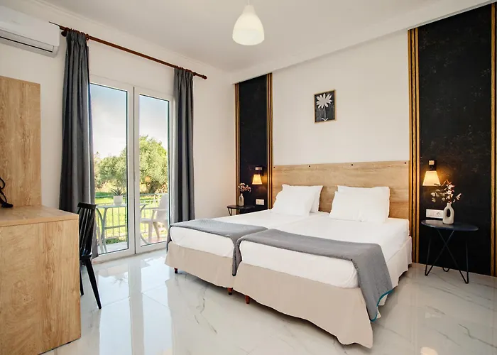 Innerhalb von 5 Minuten zu Fuß gelangt man ins Zentrum von Kávos. View ist unter anderem circa 25 Minuten zu Fuß entfernt gelegen. Das Aparthotel befindet sich in etwa 2 km Entfernung vom Strand von Arkoudilas. Die Autofahrt vom 50 km weit entfernten Flughafen Korfu beträgt etwa 51 Minuten.